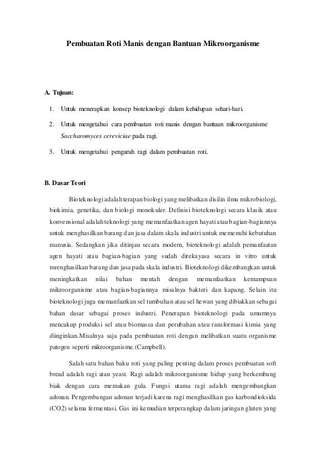 A Biologi Desain Penelitian Pembuatan Roti Manis Dengan Bantuan Mikro